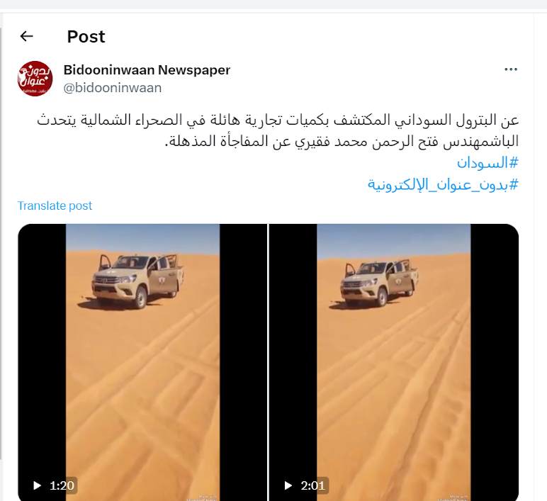 ما حقيقة مقطع الفيديو المتداول لإكتشاف نفطي في صحراء شمال السودان؟