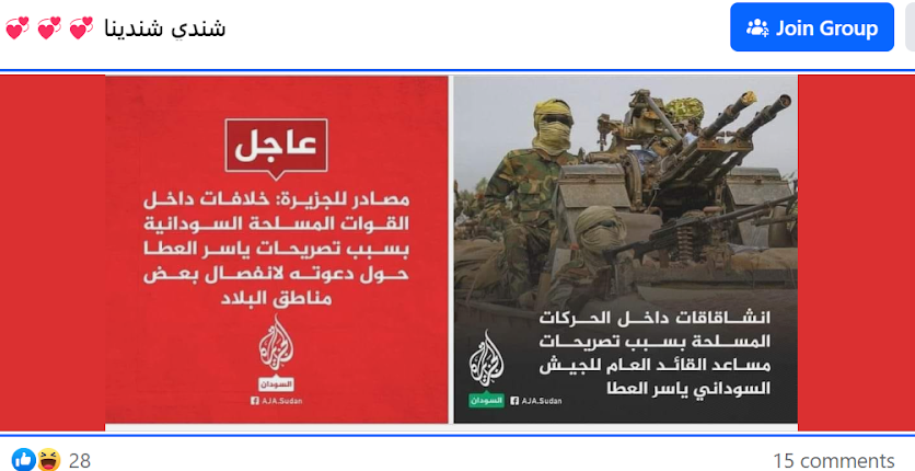 في حين نشر أفراد من الدعم السريع مقاطع مصورة على منصات التواصل الاجتماعي أعلنوا من خلالها دخولهم قيادة الفرقة 22 مشاة، بث عناصر من الجيش فيديوهات تُظهر عشرات القتلى قالوا إنهم من الدعم السريع نافين سيطرتها عليها.