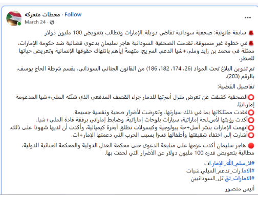 - نشر محتوى مضلل ضد «الدعم السريع».