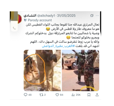 بينما توقف نشاط حساب «اللواء أحمد» في أكتوبر 2025 على نحو مفاجئ، ولم يعد يظهر على المنصة، أنشئ حساب جديد باسم «أحمد» في الشهر نفسه (كما تبيّن أنه غير اسم حسابه من قبل، من «المشير أحمد» إلى «اللواء أحمد»، لكن هذه المرة يبدو أن الحساب أغلق، لذا أنشأ حسابًا جديدًا). وواصل الحساب نشاطه، بالاسم الجديد، في دعم الرئيس التشادي، ونشر أخبار مضللة ضد السودان، والتنسيق إعلاميًا لدعم سردية «الدعم السريع» ومهاجمة الجيش السوداني.