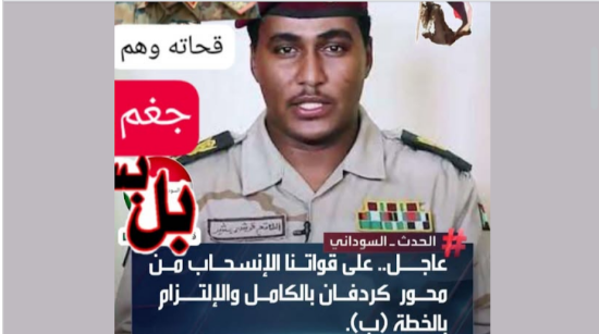 تداولت العديد من الحسابات على منصة «فيسبوك» صورة تحمل شعار قناة «الحدث»، تتضمن تصريحًا منسوبًا إلى الناطق الرسمي باسم «الدعم السريع» الفاتح قرشي، يأمر فيه قواتهم بالانسحاب من إقليم كردفان والالتزام بالخطة (ب) – بحسب الادعاء.